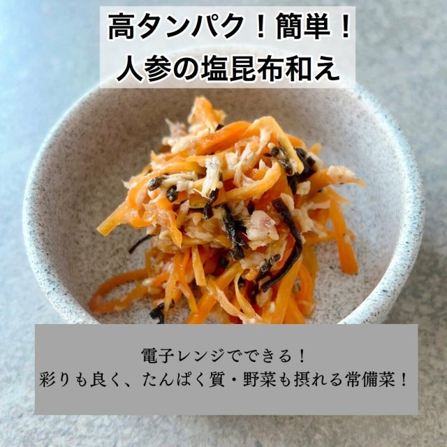 【痩せる!人参とツナの塩昆布和え】 簡単すぎるのに栄養満点で満腹感あるからみんな作ってほしい。 切ってレンチンして和えるだけ! 副菜の一品にもおつまみにも! ↓レシピは画像にて↓
