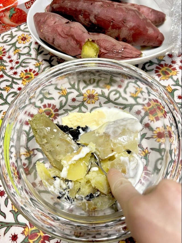 焼き芋は一本だけサンドイッチにしました? ?レシピはDELISH KITCHENのさつまいものスイートサンドを見て作りました!美味しい? … 残りは半分に切って冷凍保存に?毎日少しずつ出して夕飯にします?️
