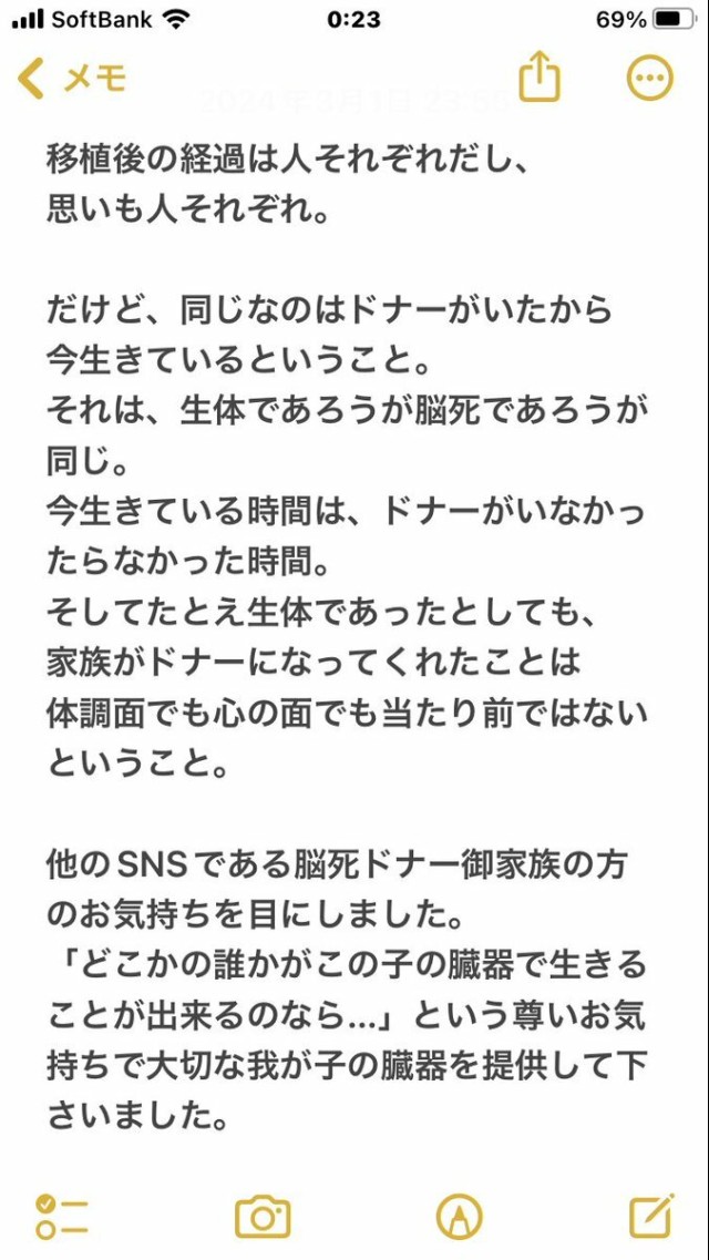 移植医療についての私の思いです。 ずっと思っていて伝えたかったことなので長くなってしまいました。 ただ、これはあくまでも私の思いなので移植後、私とは違う思いを持ってる方もいらっしゃいます。 誰が正しいとか間違ってるとかはないです。