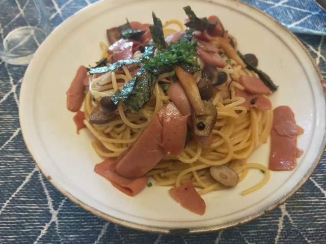 週末はワンプレートで食べれるおひるごはんが良い。今日はフライパンだけでできるナポリタンを。絵本の「ワタナベさん」にも出てくるナポリタン。絵本のとはちょっとレシピは違うけどパスタ茹でなくて良いのは一緒で簡単に作れるので助かる。
